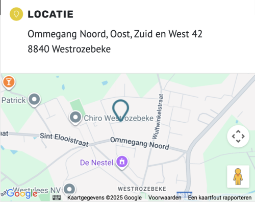 Voorbeeld: Adres: Janstraat, 9000 Gent → De kaart toont het juiste punt in Gent